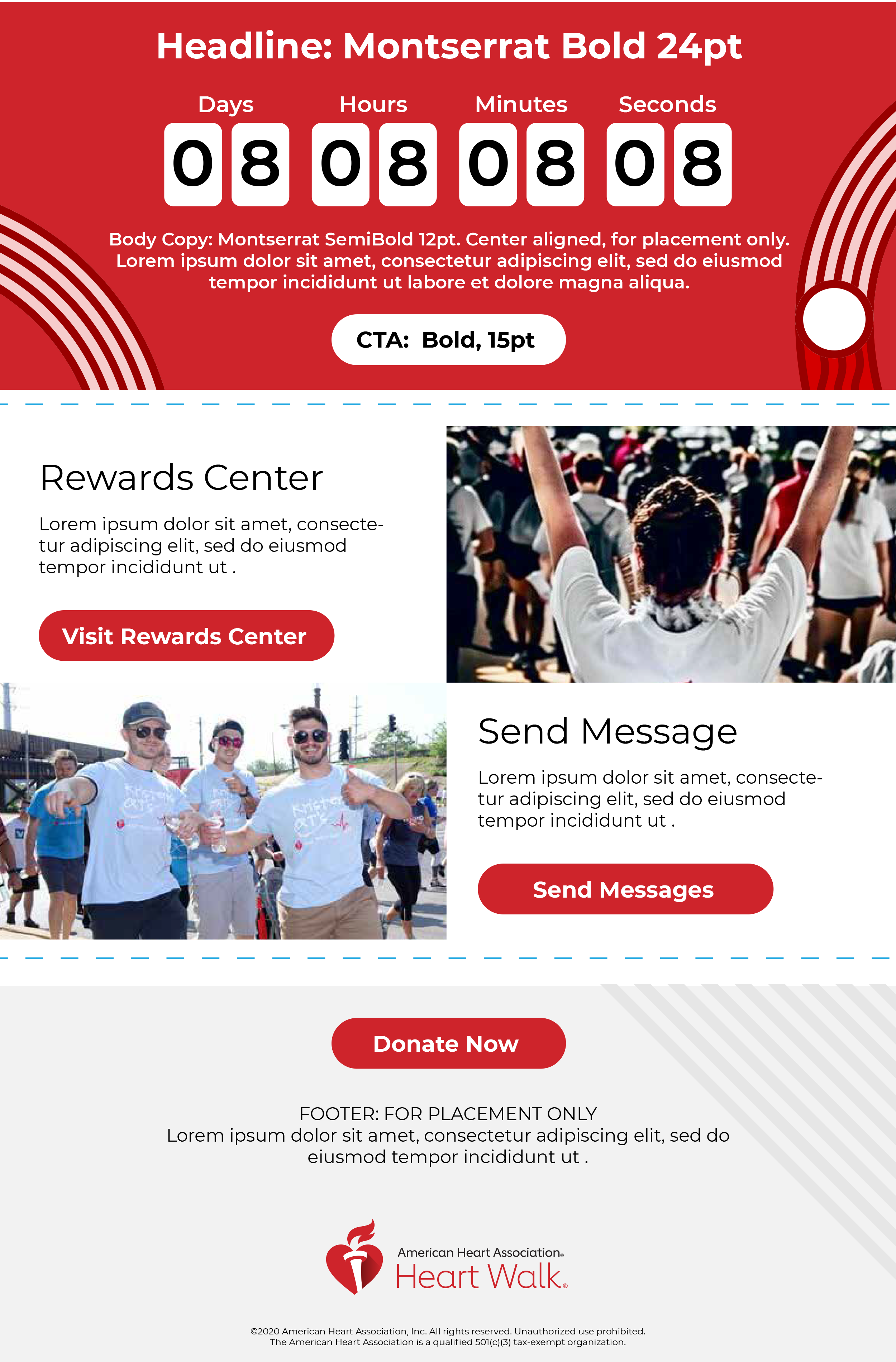 Deliver a national fundraising campaign that is consistent, engaging, and flexible—allowing hundreds of local teams to adapt messaging while maintaining brand cohesion. The system needed to scale across email and social channels, support annual themes, and meet accessibility standards, all while inspiring participation and ensuring creative quality.