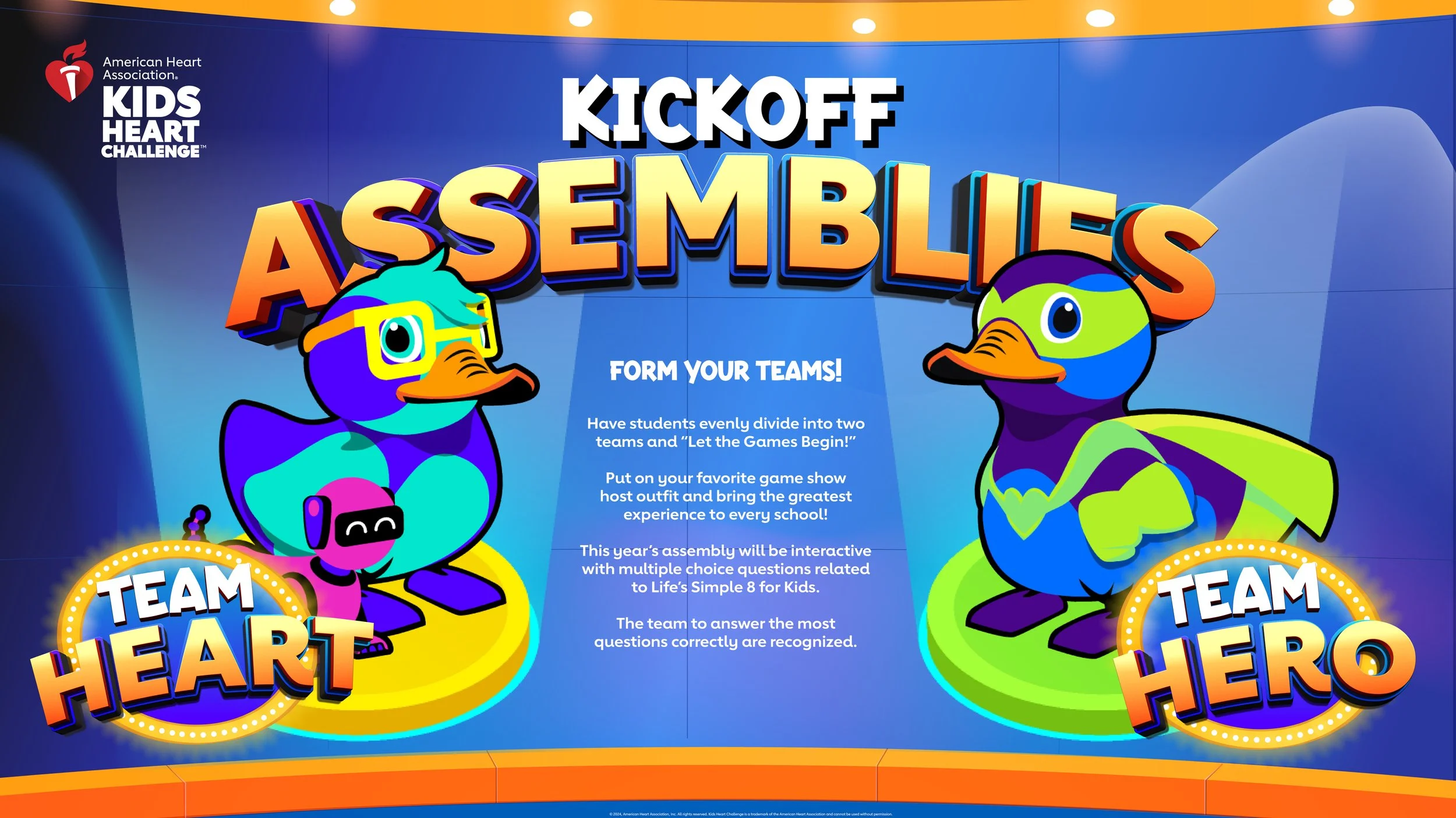 2024–2025 kicked off with the launch of Life’s Essential 8 for Kids, turning assemblies into high-energy game shows—part Family Feud, part Double Dare. Students tested their heart health knowledge, tackled quick physical challenges, and explored new Thank-You Gifts. The result was learning, laughter, and plenty of movement.